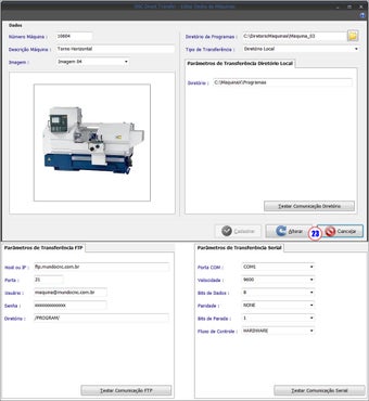 Software DNC para auxiliar na gestão de programas CNC e transferência de programas CNC de microcomputadores para máquinas CNC através dos protocolos de comunicação serial RS232, FTP e transferência direta para diretórios.